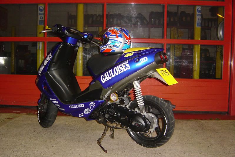 i'll upload some after the weekend this photo shows the bike when i bought it although it did have a standard engine in instead of that beast,and still has a fully standard engine in it.no mods. also after a little scrape with a volvo the front panel has been replaced with a darker blue rossi replica one. http://i72.photobucket.com/albums/i191/drift24-7/Rossi Rep SR125/SR-Rear-Side-Carholme.jpg gives you a better idea.