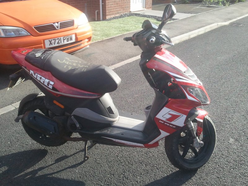Here's my 2008 Piaggio NRG DT Power, under 2,000 miles from new. Unfortunately it cannot go back on the road due to being stolen & recovered with excessive frame damage where the thief has smashed the barrel housing on the frame. This was bought with the intention of stripping for parts and rebuilding it all on to a new frame with a modified engine. How ever unfortunately due to work commitments I don't have the time at the moment and it's currently standing around doing nothing. There's a good amount in parts on the bike however frames are available for around 100 pounds and would make a great project to get going on the road again. All paper work is with me and one key. It's currently a non runner and will stay that way, if you have any questions please get in touch. For arguements sake I'll say 250 for the ped as a whole, if there's enough interest I'll get stripping parts off it first chance I get.