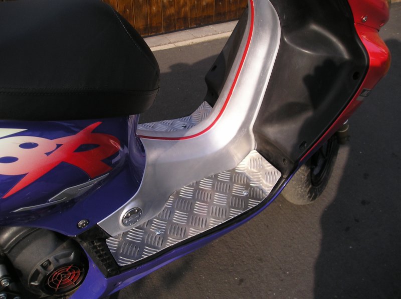 Hi all not sure if I am allowed to do this but Im sure I will get told if not! I make ally tread plates for peds you can find them on fleabay .I do em for Speedfights, x8rs , both sr 50 models ,early typhoon and nrg , early runner and piaggio et2 and et4 vespas. more on the way. I dont charge much compared to the stupid prices some people are asking its ally not gold! Pm me if you would like more info or some made for your model of scooter. Forum members get £2.00 off