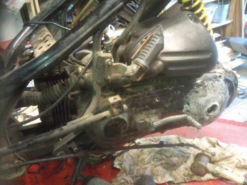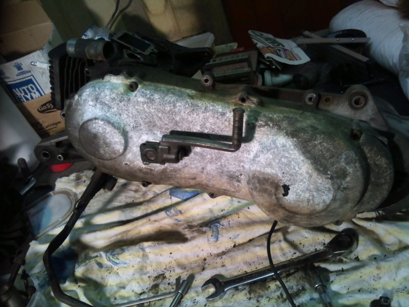 Cleaning started That belt cover took a lot to get clean....ish. Going to have to go over it with a flap wheel i think or you will see the pitting under the paint. Had to pack up at 7:45 tonight, need to order some parts for it. Crank case gasket, bearing seals, cylinder gasket set and a new piston i think. Still need to get right into the corners of the parts prior to painting, but will do the larger case half tomorrow and then all three together. I was going to say "all three at once" but I know what you lot are like, it'll be a case of 'how many hands you got then..............must have loads of arms to do three at once' HAHA Hell of a difference once everything is even remotely clean. Hate filthy engines. And i got the piston size wrong i know, it's 41mm, not 40mm.