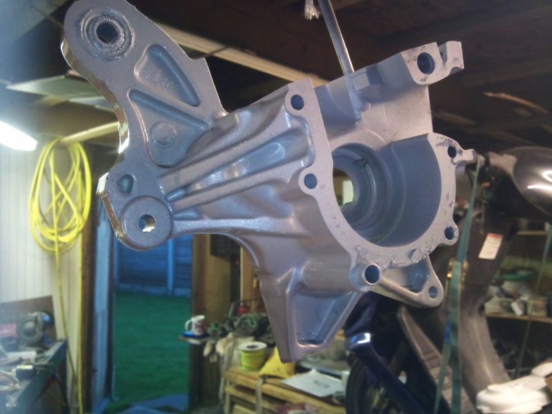 Naa, aluminium corrosion. Always happens to anything made of ali eventually. Take a peek at your cars alloy wheels, where the paint is starting to blister, scrape a bit off and you'll see white rust underneath. Just made me realise though that I painted all that stuff black and didn't do the belt cover! DOH! Never mind, I've still got to do the wheels, mainly purple but with black spoke flashes. I'm bloody sure there's something else that needs doing black but can't for the life of me remember what it was