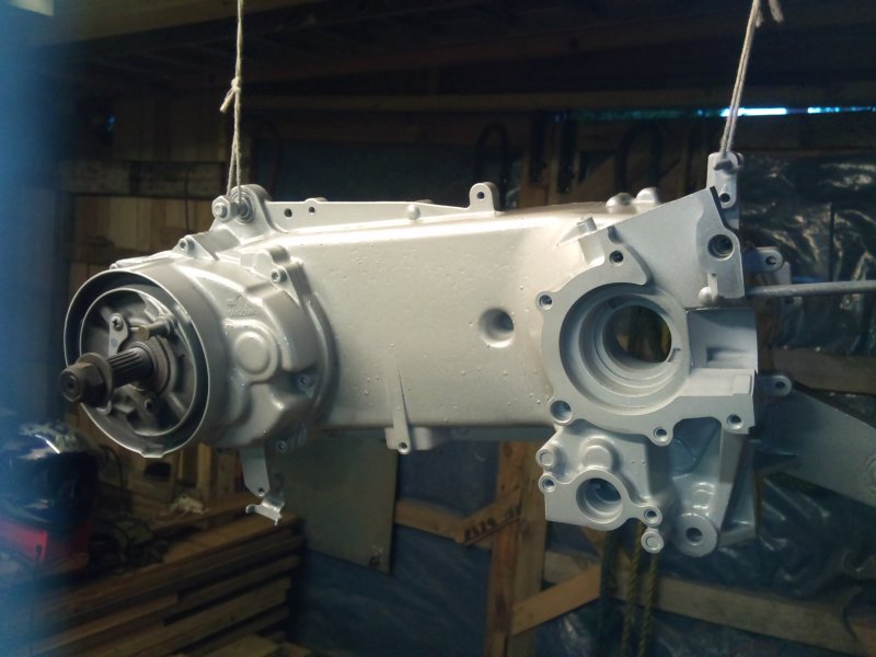 Been a hell of a week, stupidly busy, but have managed at last to get the cases painted. Yay, it's moving on a bit. Just need to laquer them. One little drawback, when i ordered the new piston, instead of one for an air cooled engine, they sent the liquid cooled one. It's only about 10mm too long for the job, but never mind i'll keep it in stock anyway, they are always useful. On the plus side, they are sending me a Meteor Piston kit, £30's worth of piston, for the normal price I pay for piston kits. Bonus
