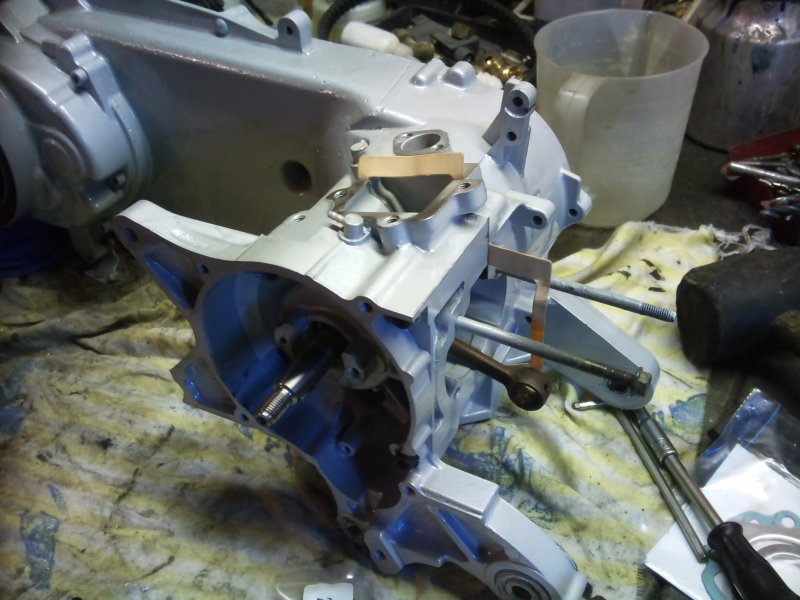 Well...................got the new crank bearings and seals in, new crank half gasket, looks like this: Now i got a little mindbender. It's notchy When you turn the crank by hand, it's not smooth. It's like the second hand of a clock, no noise or anything like that, but it's as if you are turning a dial and it's dropping into position, like off a cam and onto a flat, but there are no flats. I think I got a duff bearing. New one as well. Ah well...............split it again tomorrow i suppose and have a looksee.