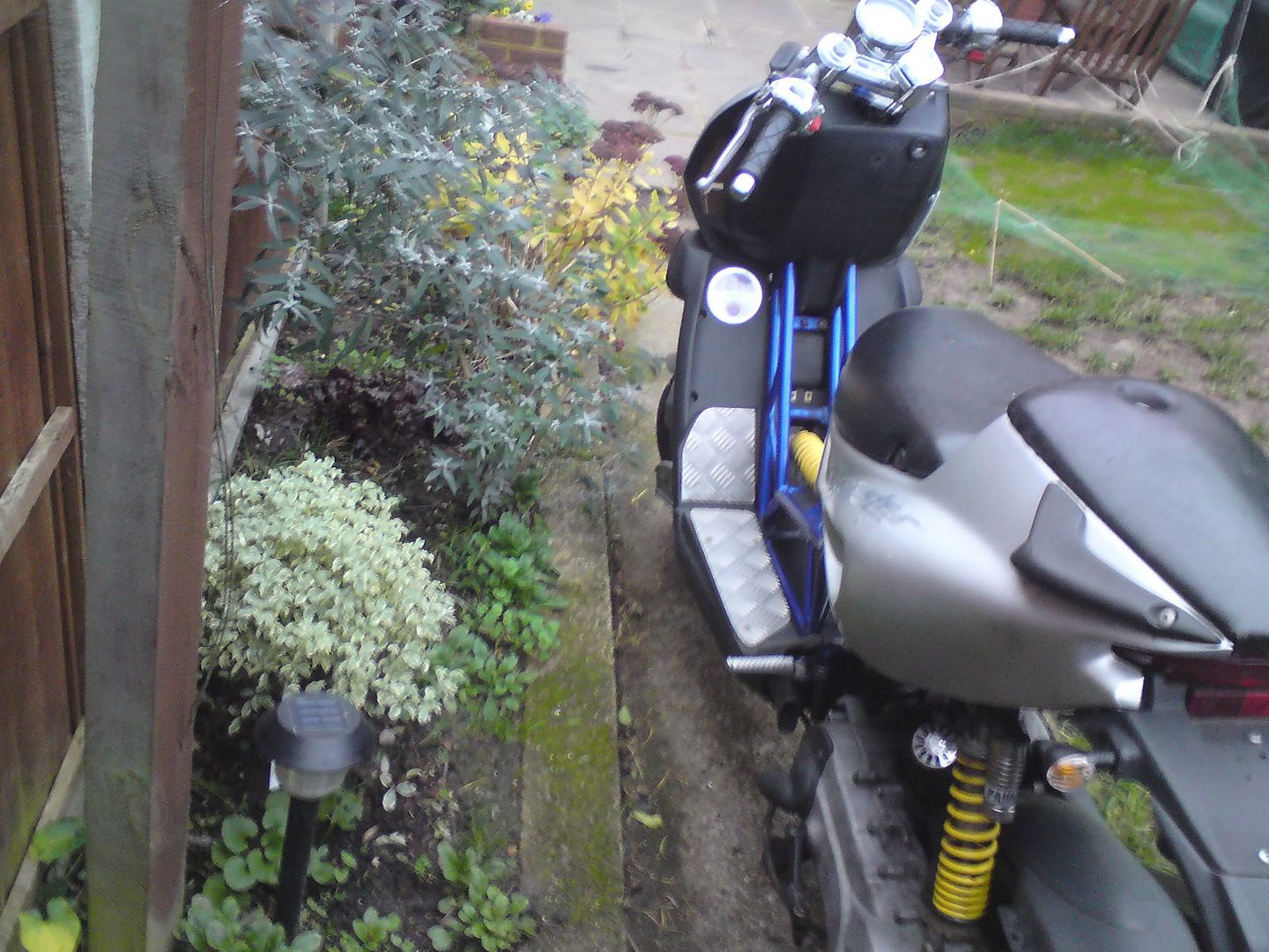 Finally sorted most things n my dragster but now i passed my driving test so no longer really need it anymore Its in decent condition, 1 deep small scrath on front panel but thats about the only damage to panels apart from a few broken lugs on front panel. Bike runs perfect has a malossi 172, 25mm carb with manual choke, malossi reed block, pm59, pm rear caliper, malossi air filter. Also unfitted but will come with bike is a polini belt, 180 variator and polini clutch. Have a few spares too. Few bad points; No MOT Needs a new valve on rear tyre needs new rear and front right indicator bulbs and rear light bulb Just fitted brand new rear pm caliper, new front caliper, new front and rear discs, new clear floatbowl, new sparkplug, new manifold as pms shitty one last like a month and a new front rubber boot (absolute pig to do). Im looking for £850 ono will upload some pics in a bit EDIT: Also got past MOTs, original manual, 2 original keys and logbook.
