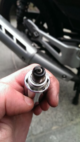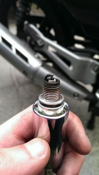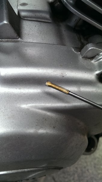 was thinking why my dash light suddenly died " what the f***k is wrong with the thing " then decided to investigate and this is what happend looked at the dial to see if the light was still out which it was so though right lets get taking this plastic off finally did that and then got the grey rubber bulb holder out of it mount and took the bulb out and it looked like this might not be able to see it very well but the filament isnt attached at both end's which there lie's the problem sorted job done then moved onto check the spark plug to see how its looking and here's 2 pics of it think it looks ok don't seem to be running rich but maybe a little lean but it had a new plug ,oil,oil filter + fuel filter on its last service which was at 9,862 miles its now on 10,613 so not too bad ,, here's the oil also looks in good condition , if it was a dark colour then i'd get changing it but it's all good thanks for looking every one