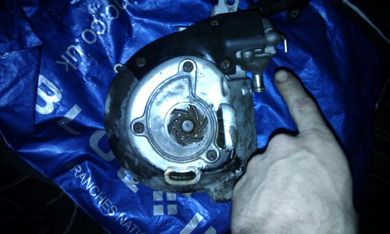 my water pump is knackered so i got one off a mate but its different, mine has a black plastic bit at the top with 2 pipes going into it, 1 thin one to the carb and one thicker one going to a metal tube leading to the exhaust manifold near where it bolts to the bore, my mates one dosent have the black plastic bit or the part where the 2 pipes connect, also on the inside of mine it has a lump of rubber and what looks like a piece of foam air filter materiel behind that, mates one dosent, now, i took a wild guess that mates one is from a dna but should still work, so i fitted it still and as for the 2 pipes, i also guessed they were something to do with emissions so i just blocked the two pipes off, all seems well but will i do any damage? heres a pic of my old water pump and im pointing at the part my mates dosent have, any ideas?