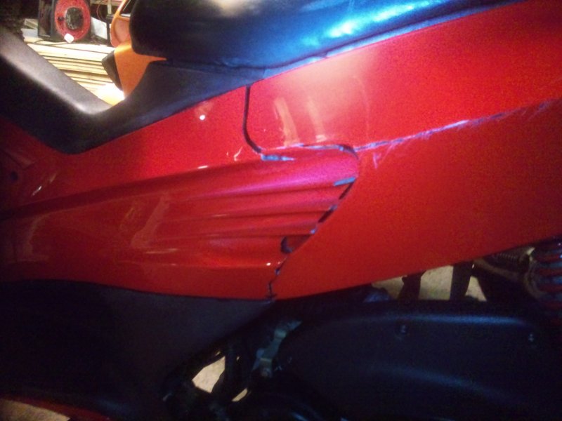One down, several to go. The NRG got picked up tonight (the orange one) And look what he's done to his Gilera with the evo kit! Dunno about plastic welding that side panel