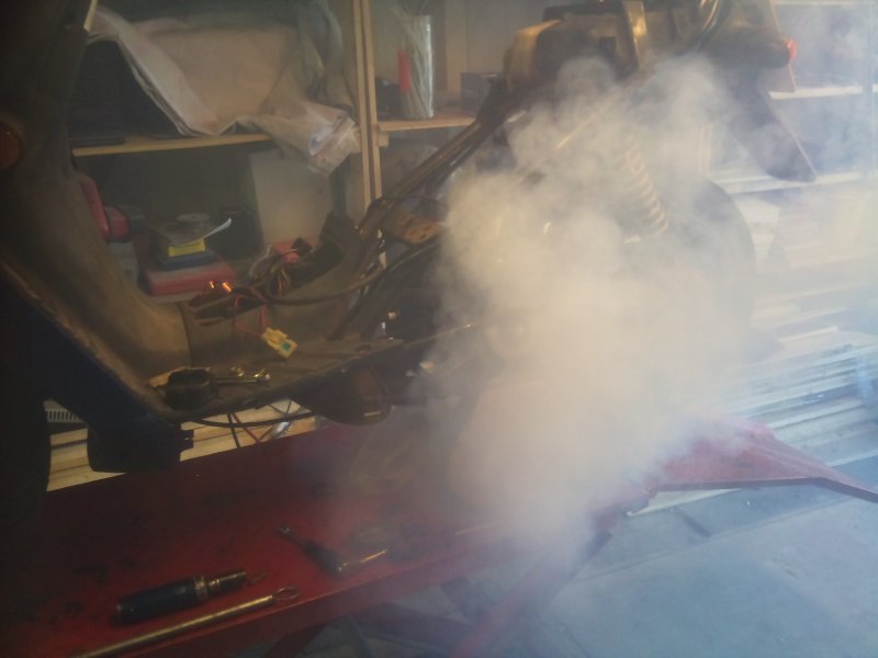 Ok, so the kids got no money for a new panel for his gilera evo. So i gave John Wayne a call and said I'll give him a trial run at being a scooter mechanic. Reckon he must have been looking at this post and listening to Scubabiker cos look what he did!!! I had to let him go of course So thats another one gone out the workshop today. Started on that 54 plate Katana this afternoon, just to see if it would run at all. Thank god i didn't put the exhaust on straight away. There was loads of oil in the cylinder that dumped itself onto the ramp. The starter sounds like it has had better days, but on the plus side it now runs quite smoothly after a bit of tinkering with not much smoke.