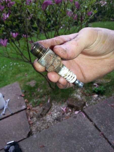 Hi I have a speedfight2 silver sport ac with a Leo Vince TT sports exhaust with stage 6 foam airfilter running a 100 main jet, I have recently been having problems trying to start the bike as it just clicks on electric start and the motor does not start it will only start after trying lots of time then when the motor finally starts I have to keep revving the bike really fast like (I am tossing bike off or sommet) till it finally builds up enough revs to keep the motor running I have a pic of my spark plug below and all this oil what I have no idea is coming from below Please help thanks!