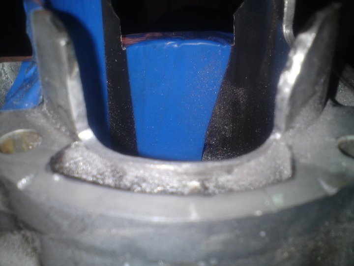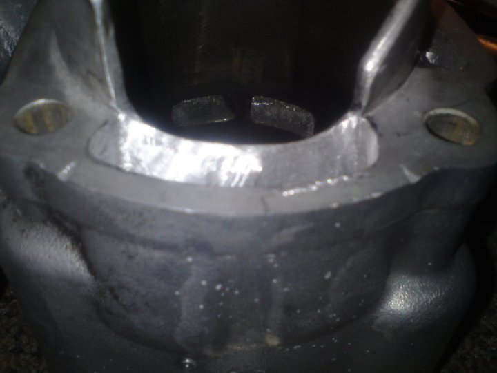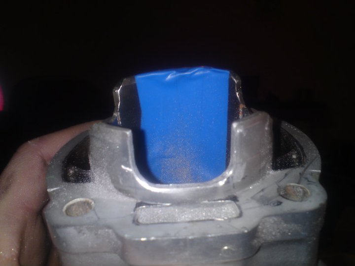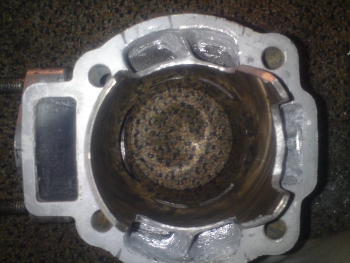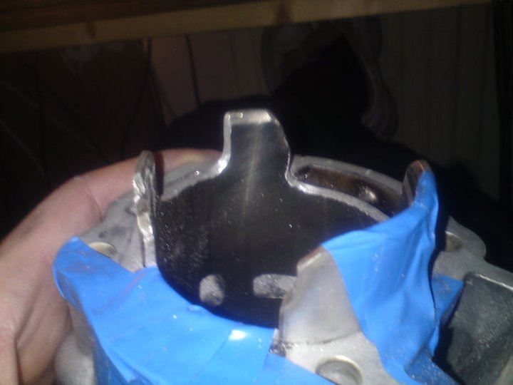 look at pictures before you butcher your skirts like that bet your piston slaps around like a fish. no real porting done just enlarged your transfer feeds just need tidying up and youve rushed hence youve slipped a few times just take its slowly and then finish it off properly get it all nice n smooth.