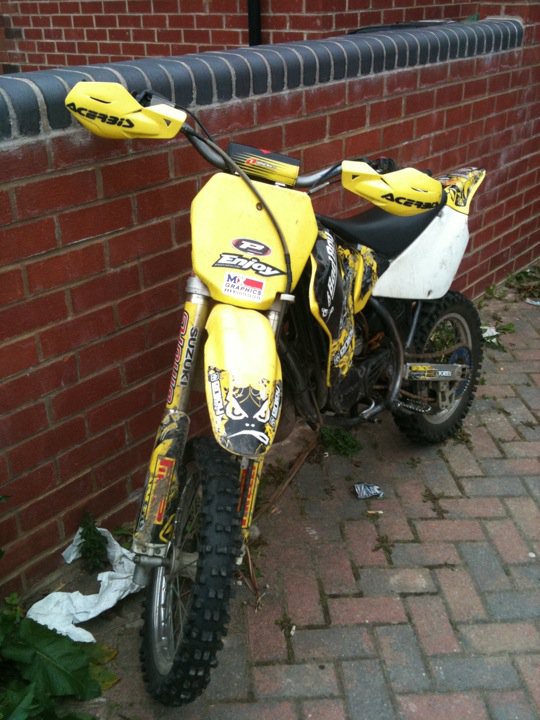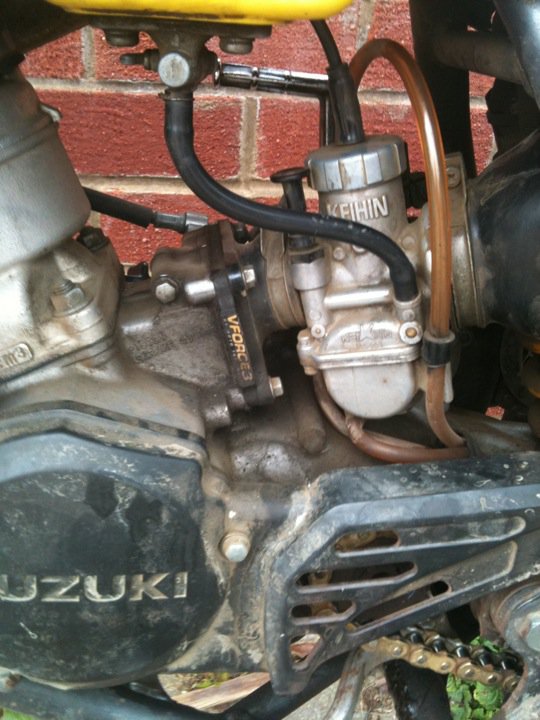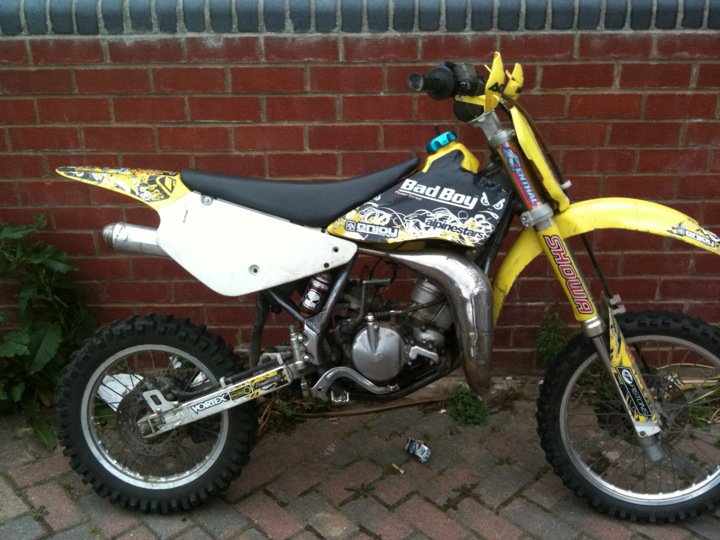 my small wheel rm85 with full hgs race pipe,vforce reeds and some other bits.