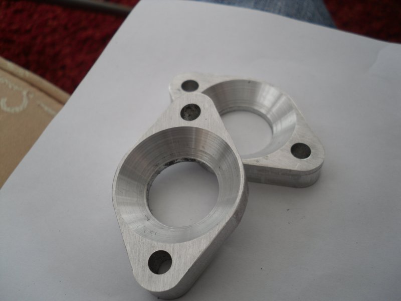 Just a little update on the twin, had these exhaust flanges machined up, as you can see, the Doppler barrel has flat exhaust face where as the the doppler pipe and std Piaggio have cone ends. Just need to fit longer studs ! If anyone want's one then just let me know. ps, I've fitted the cranks with my joint and it turn's over perfect!