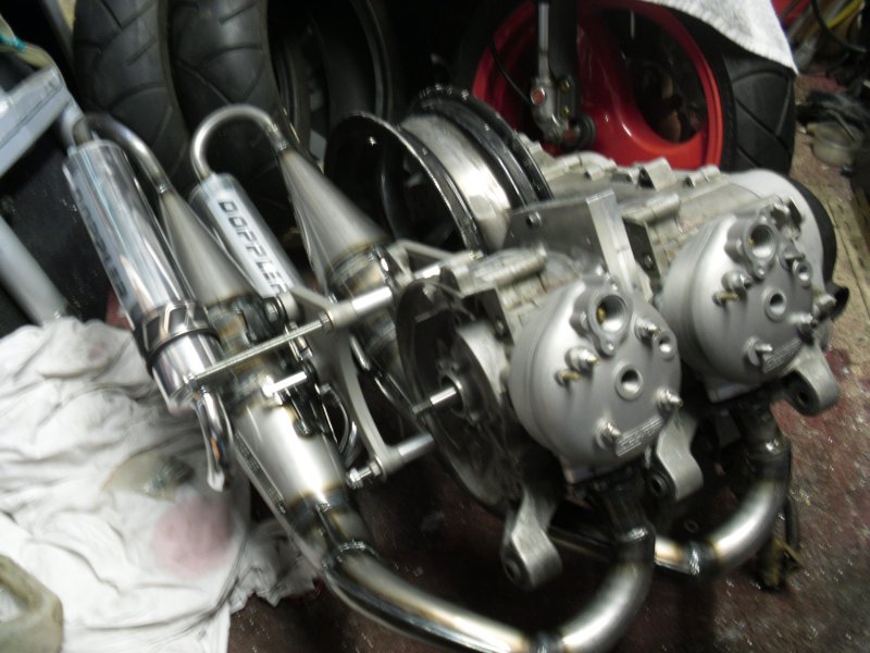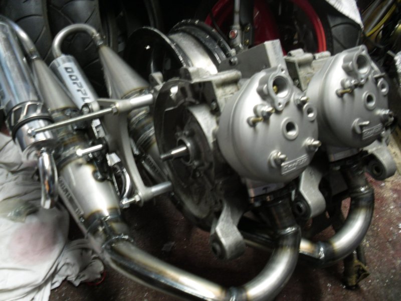 Here's a few pics of my latest twin engine that I'm building, based on a nrg motor. Two Doppler S7r barrels, Doppler full circle cranks, I'll be using Doppler s3r pipes running on std 17.5 carbs. Just waiting for some machining from an engineer and it's almost ready to build up. Just need a Mc3 to put it in! If you know where there is a good nrg for sale let me know.