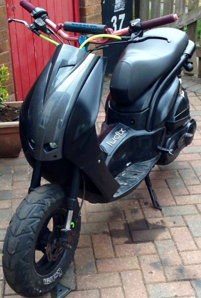 Started to streetfight the ludix today. No pictures yet but will be tomorrow. Cut frame at the back and have been trying to rewire my new indicators and back light cos the wiring was proper brittle. Got my indicators wired up good, but ive been pulling my hair out trying to rewire the back light and brake light. As theres 2 brake bulbs and one back bulb they each have there own wiring. I dont understand as it was 3 bullet connectors that pulled off. Tried to rewire but my back light bulb is getting constant power while the ignition is on. Ive worked out that the brake bulbs each need constant power as the circuit is completed with the switches at the levers. The back light should only operate while the engine is running. Why peugeot couldnt have colour coded each wire i have no idea. So riding home at 12am with a very bright back light that makes my headlight very dim. Ill have it sorted tomorrow though as im too tired to care at the minute.