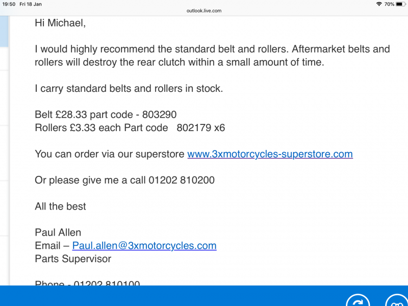 I emailed a Peugeot dealer to ask what size and weight rollers were standard in the speedfight 3 125 4stroke,I also asked if he recommended polini or other rollers along with a drive belt and and he said no aftermarket rollers and belts will destroy the rear clutch within a small amount of time