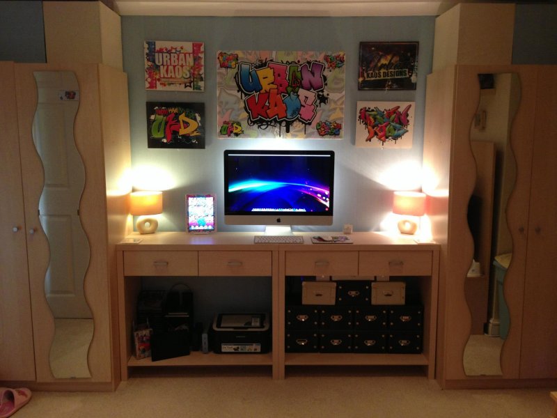Bedroom/Office its actually a little different now, got the new Xbox 360 Slim Teddys are stuffed under the SofaBed.