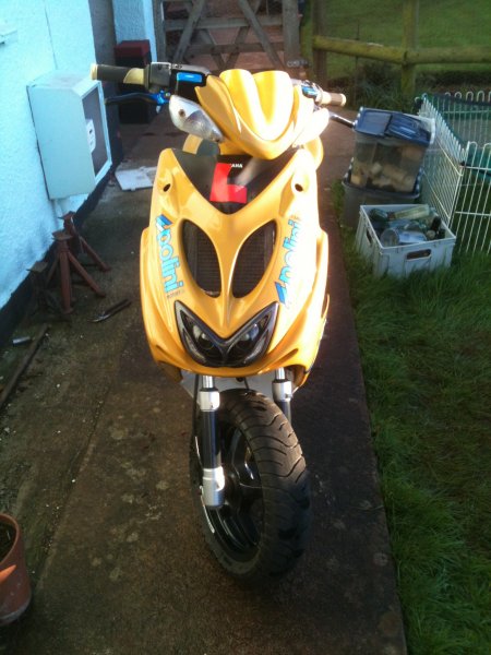 hi im James im 16 and living in bristol, this is all new to me because im not really a computer person so bare with me haha. im crazy about bikes and cars well anything with an engine attached to it but my new love is my Aerox well i say new ive been modifying my bike for over a year now and only the last two weeks ive had running problems :/it sucks heres the bike hope you all like it comments welcome !