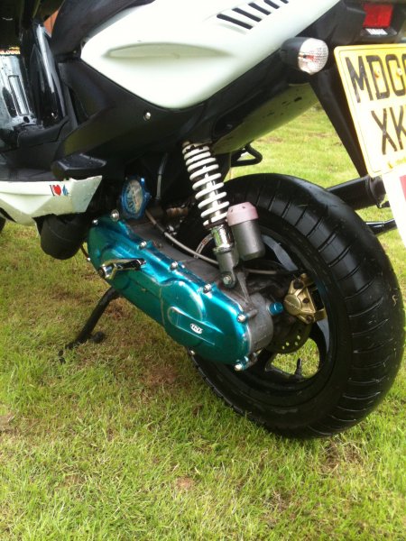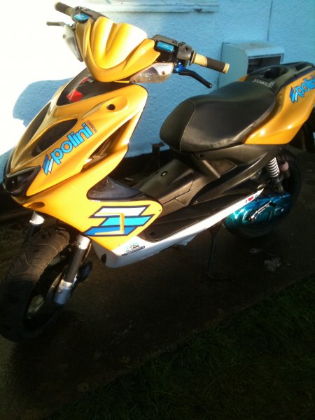 mint that is mate i like the polini stickers. and yeh im glad i went for an aerox love jap bikes but the only thing with aerox's is there a pig to work on heres mine anyway but i got a smaller plate on now and cut down L plate on the engine case.