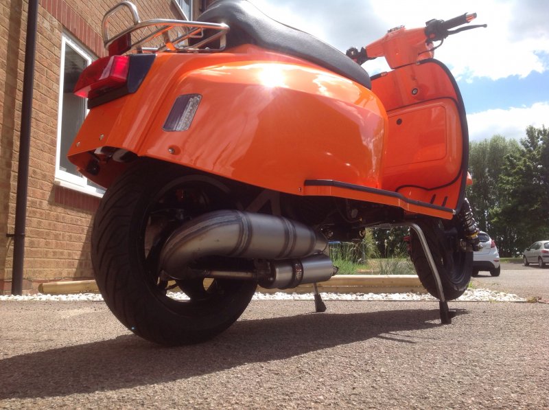 Here is my sym jet basix/eurox ( v5 says eurox, but its a basix, sym went from basix to eurox in 2006 a rename but still the same bike, then they went cosmetic with teardrop lamps) This is what happens when you give a youngun a rattle can, its been sprayed over without rubbing down or the decals removed. panels missing lugs and zip ties were holding the lower floor side panels on ( until i sourced so decent bolts and repalced them with non broken panels) i only got this because i like the look of the front end and those bitty little lamps. leo vince TT fitted - stock clutch and variator ( un-restricted) stock airbox and 12mm carb, running 3x6g +3x8g naraku rollers, flat road tucked she tops just shy of 80kmh (50mph)