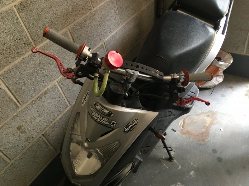Kymco Agility?? The handlebars have been customised as it's not the correct top end. Plenty of spares available as it is a generic Chinese type. Just google Chinese motorcycle spares or Kymco spares as quite a few companies specialise in Chinese spares. Cheap as well . The flip up backrest is good if you have a bad back lol http://www.kymco.co.uk/kymco/new/bikes/Scooters/2013agility50.htm#.WQRn4Ma1vIU