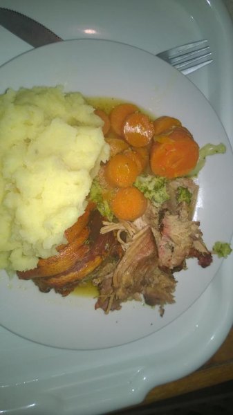 the men of the family, shoing the women how its done. me and the stepdad cooked some proper pork with the best crackling there is! mash and veg, none of it got burnt, it was edible and if i say so myself it tasted pretty damn good. gf didnt believe we could cook.