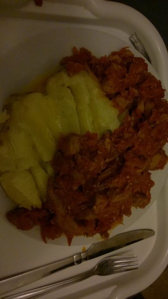 fuck me. she can cook. cheese on a baked potatoe. she even used my favourite cheese pork goulash or whatever she said it was and she even got me a can of fosters from the fridge.... shes being too nice... she wants something